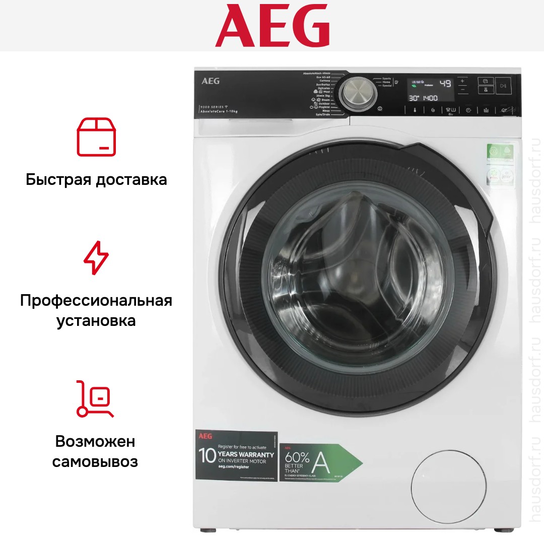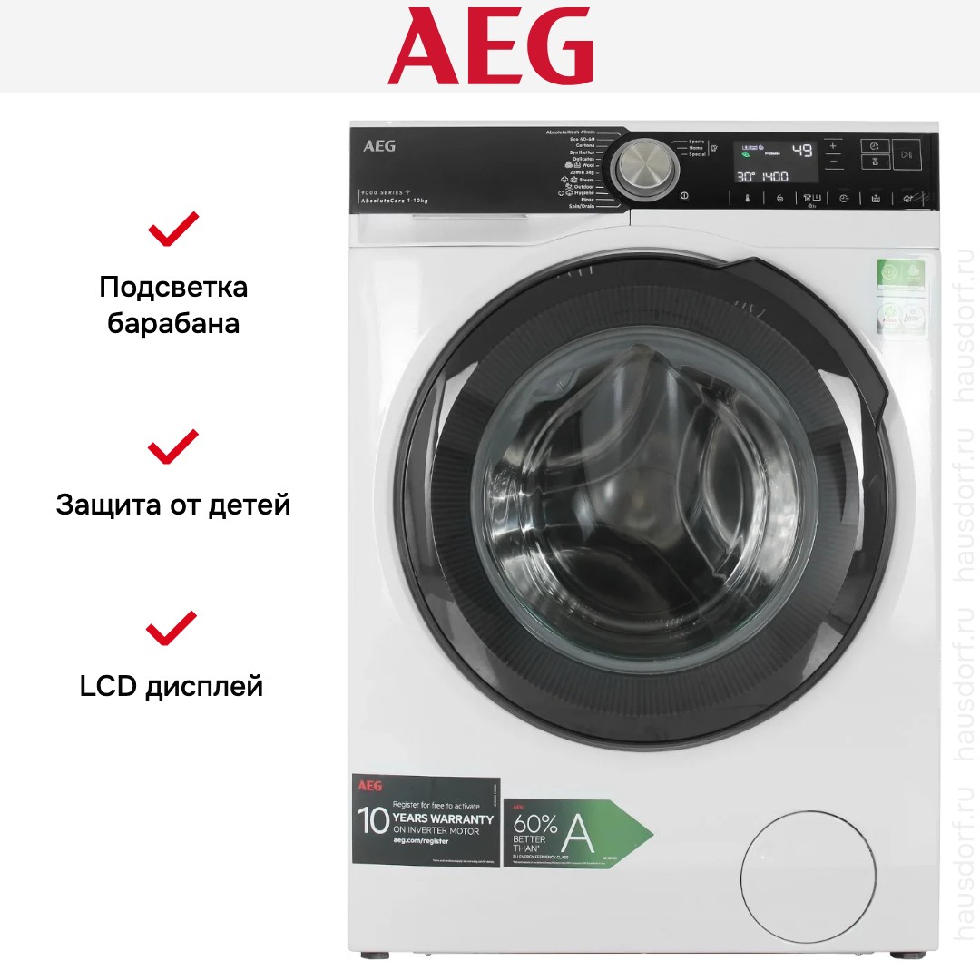 Стиральная машина АЕГ LFR95146SUE выпущена в стандартной конфигурации — устанавливается отдельно, поэтому рекомендуем заранее выделить для нее место в квартире. Благодаря классической фронтальной загрузке она привычна и удобна даже для тех, кто не очень разбирается в технике. В барабан помещается большое количество белья, что подойдет большим семьям или тем, кто часто стирает объемные вещи — постельное белье, верхнюю одежду. Максимальная загрузка: 10 кг.