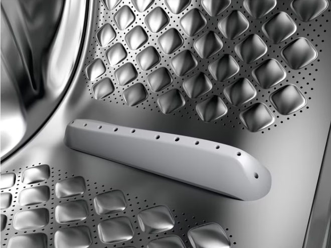 Принцип работы в целом такой же, как в сушильной машине: вещи обрабатываются потоками теплого воздуха, барабан вращается на разной скорости и в разном направлении, чтобы просушить все элементы.
