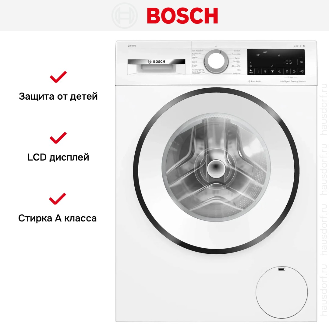 Цвет этой стиральной машинки — белый. В данной модели Bosch используется барабан WaveDrum. Его конструкция разработана специально для более бережной, но при этом все еще эффективной стирки. Мотор: Инверторный. Благодаря ему машина работает тише, потребляет меньше электроэнергии, сохраняя при этом необходимую мощность.