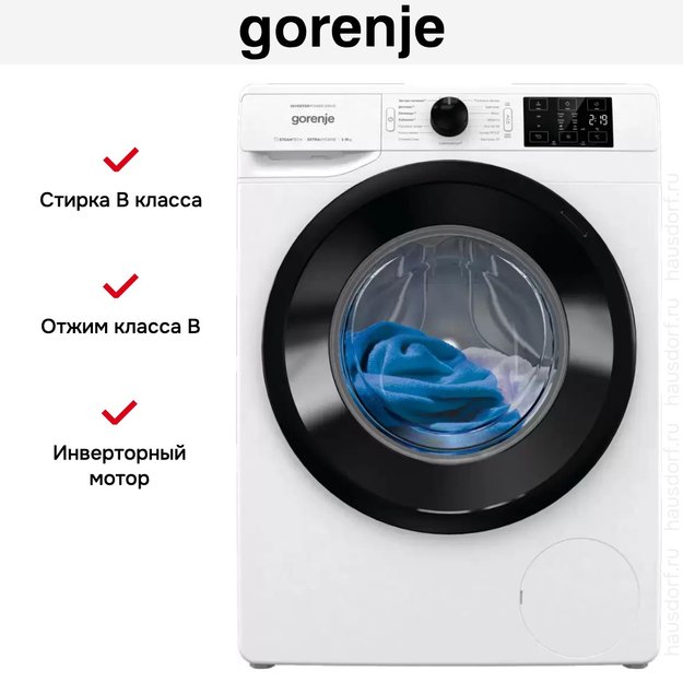 Цвет этой стиральной машинки — белый. В данной модели Gorenje используется барабан WaveActive. Его конструкция разработана специально для более бережной, но при этом все еще эффективной стирки. Мотор: Инверторный. Благодаря ему машина работает тише, потребляет меньше электроэнергии, сохраняя при этом необходимую мощность.
