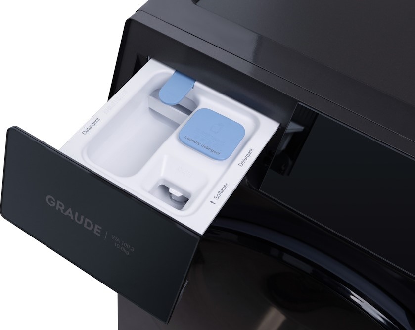 Стиральная машина Грауде WA 100.3 выпущена в стандартной конфигурации — устанавливается отдельно, поэтому рекомендуем заранее выделить для нее место в квартире. Благодаря классической фронтальной загрузке она привычна и удобна даже для тех, кто не очень разбирается в технике. В барабан помещается большое количество белья, что подойдет большим семьям или тем, кто часто стирает объемные вещи — постельное белье, верхнюю одежду. Максимальная загрузка: 10 кг.