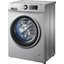Серебристая фронтальная стиральная машина с функцией пара