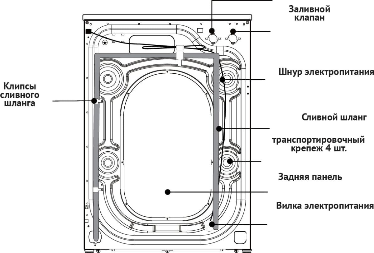 Транспортировочные болты служат для жесткой фиксации барабана в корпусе и находятся на задней стенке: обычно насчитывается от 4 до 6 креплений. Это достаточно большие болты с головками размером от 10 до 17 мм с шайбами или мягкими пластиковыми втулками. Удаление их необходимо выполнить в обязательном порядке перед установкой машины на место. В большинстве моделей в комплект входит специальный фирменный ключ для их удаления. Если он отсутствует, можно воспользоваться обычным универсальным гаечным ключом.