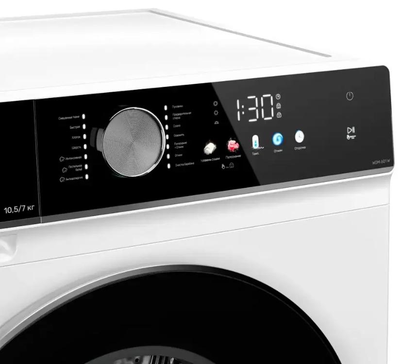 Эта модель — комбинация стирки и сушки, что полезно людям, которые не могут или не хотят приобретать отдельно сушильную машину, при этом в квартире нет балкона или лоджии, чтобы с комфортом сушить одежду на веревках. Вы можете отложить запуск, если хотите сэкономить на тарифах и включить машинку ночью, либо если планируете развесить белье сразу после возвращения работы и не ждать, пока закончится цикл. Скорость отжима достигает 1200 оборотов в минуту.
