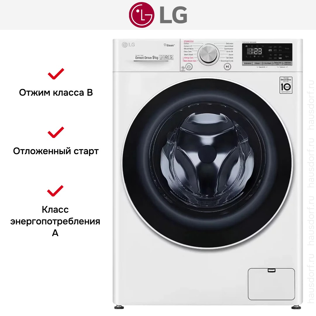 Стиральная машина Лджи F4R5VYL0W выпущена в стандартной конфигурации — устанавливается отдельно, поэтому рекомендуем заранее выделить для нее место в квартире. Благодаря классической фронтальной загрузке она привычна и удобна даже для тех, кто не очень разбирается в технике. За счет небольшой глубины данную модель предпочитают владельцы небольших квартир, студий. Вместительность барабана средняя, поэтому ее хватит и для одиночек, и для семей с детьми. Максимальная загрузка: 9 кг.