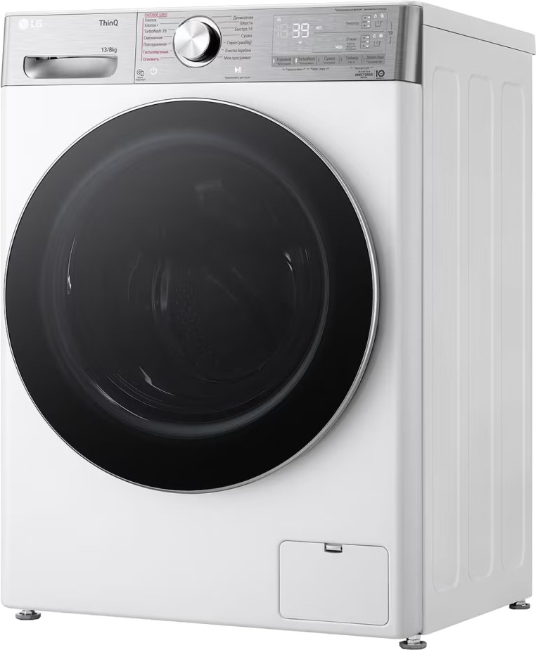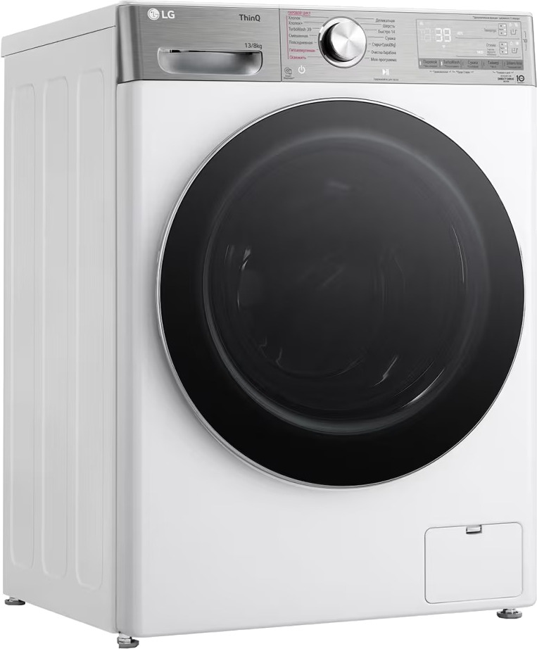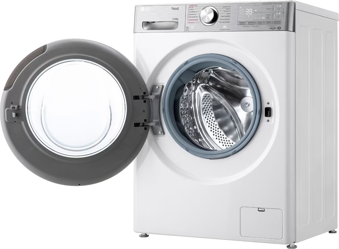 Стиральная машина Лджи F4V9LD2W выпущена в стандартной конфигурации — устанавливается отдельно, поэтому рекомендуем заранее выделить для нее место в квартире. Благодаря классической фронтальной загрузке она привычна и удобна даже для тех, кто не очень разбирается в технике. В барабан помещается большое количество белья, что подойдет большим семьям или тем, кто часто стирает объемные вещи — постельное белье, верхнюю одежду. Максимальная загрузка: 13 кг.