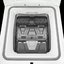 Модели с вертикальной загрузкой отличает надежное крепление барабана на двух валах. Еще одно их отличие — особая конструкция люка: на нем имеется отверстие, закрывающееся на замок. Чтобы получить доступ к барабану, необходимо открыт его и отодвинуть створку.
