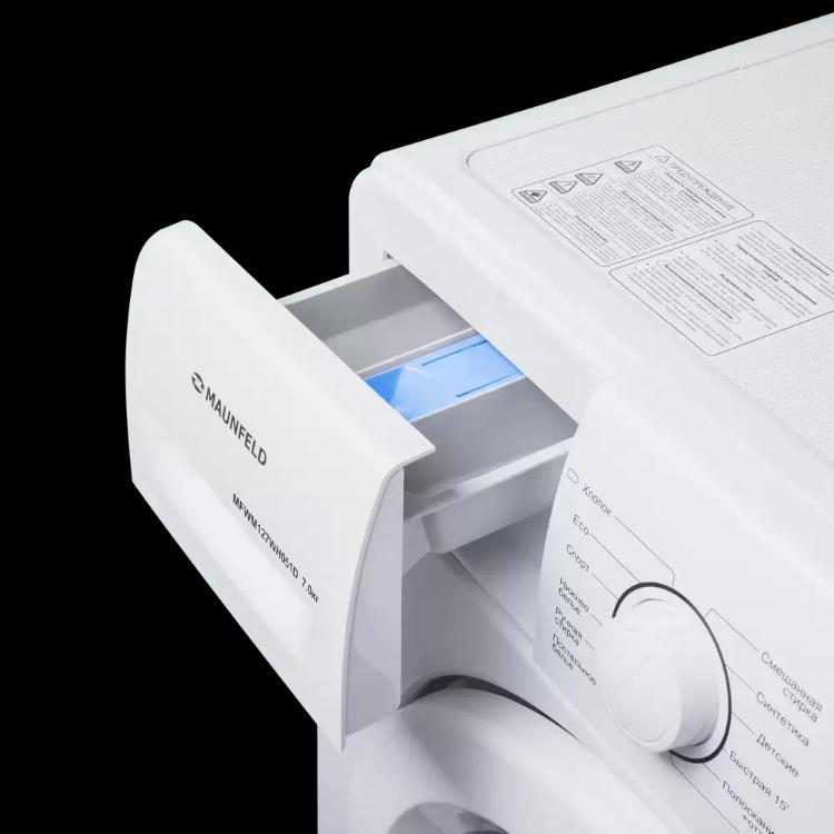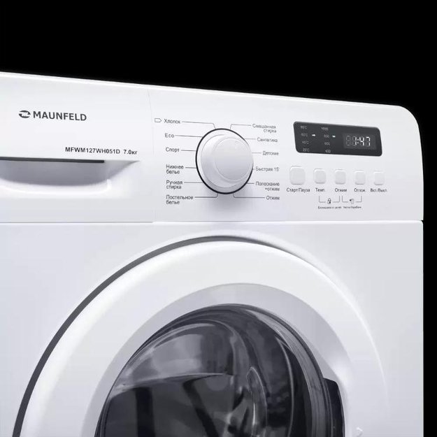 Стиральная машина Маунфилд MFWM127WH051D выпущена в стандартной конфигурации — устанавливается отдельно, поэтому рекомендуем заранее выделить для нее место в квартире. Благодаря классической фронтальной загрузке она привычна и удобна даже для тех, кто не очень разбирается в технике. За счет небольшой глубины данную модель предпочитают владельцы небольших квартир, студий. Вместительность барабана средняя, поэтому ее хватит и для одиночек, и для семей с детьми. Максимальная загрузка: 7 кг.