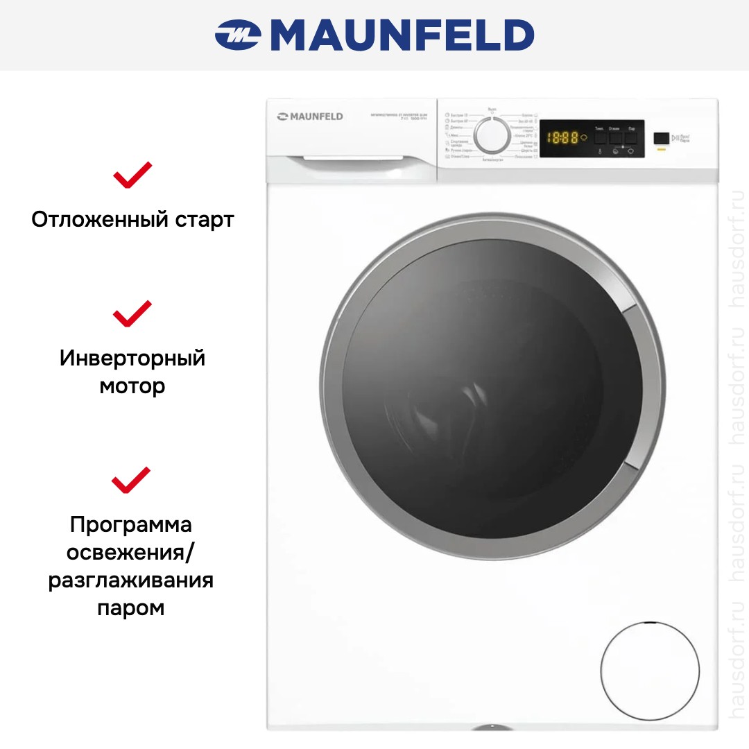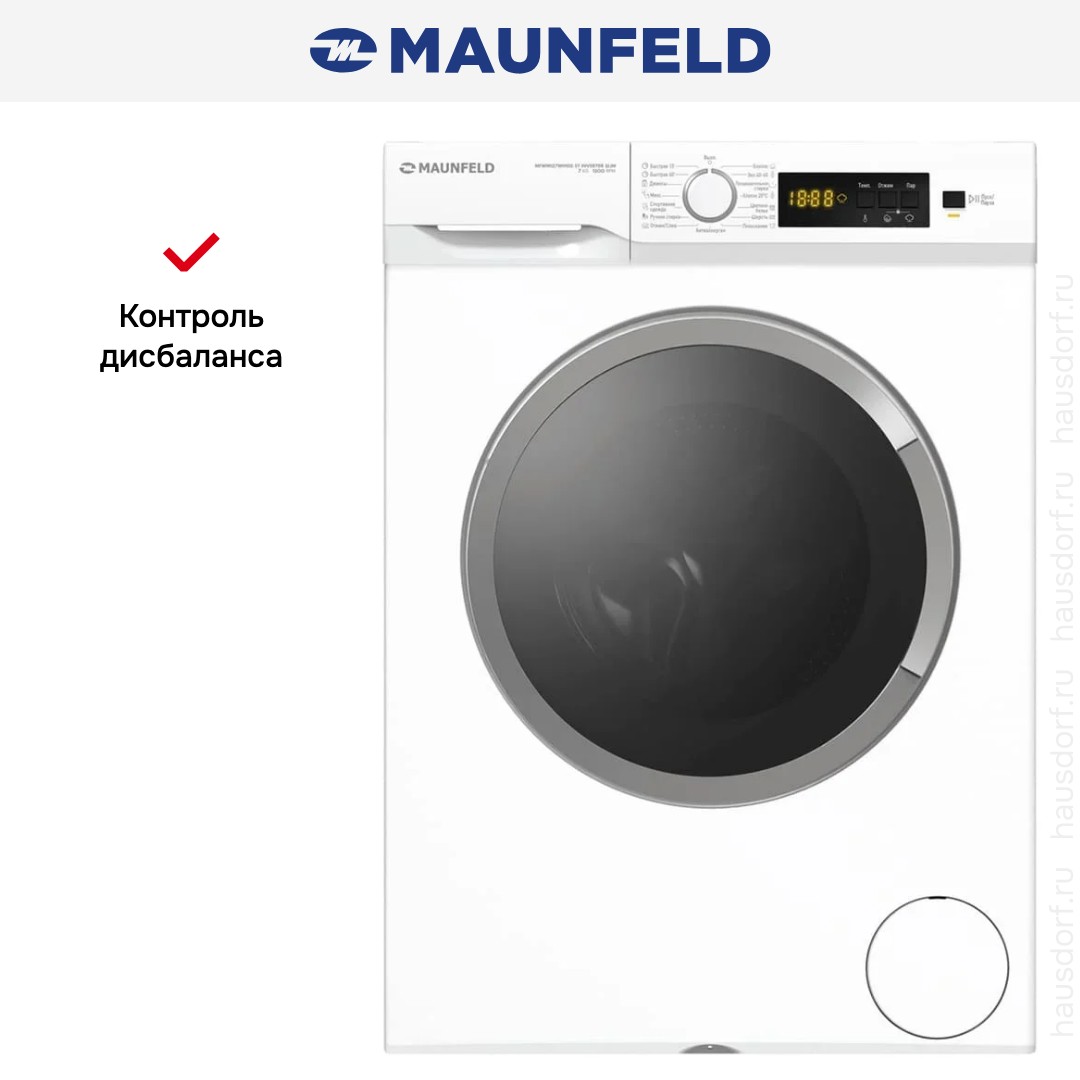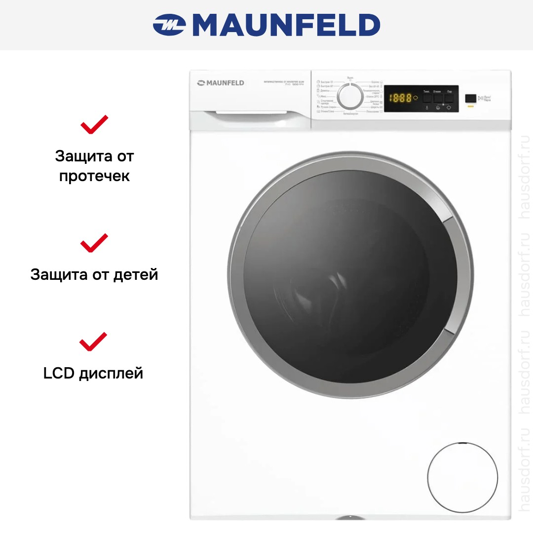 Стиральная машина Маунфилд MFWM127WH100 ST INVERTER SLIM выпущена в стандартной конфигурации — устанавливается отдельно, поэтому рекомендуем заранее выделить для нее место в квартире. Благодаря классической фронтальной загрузке она привычна и удобна даже для тех, кто не очень разбирается в технике. За счет небольшой глубины данную модель предпочитают владельцы небольших квартир, студий. Вместительность барабана средняя, поэтому ее хватит и для одиночек, и для семей с детьми. Максимальная загрузка: 7 кг.