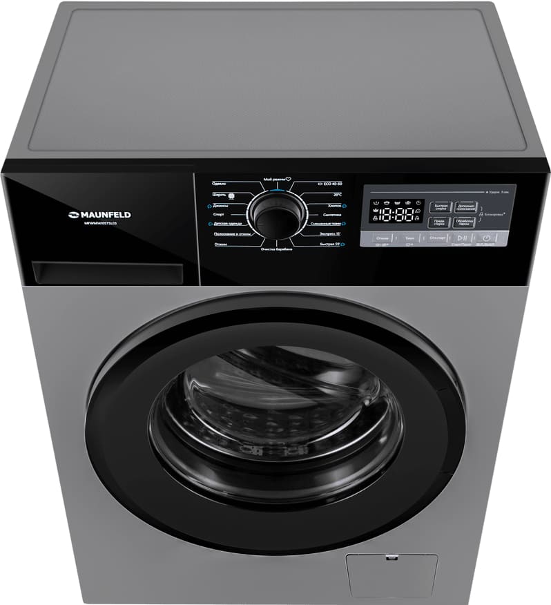 Стиральная машина Маунфилд MFWM1410STSL03 выпущена в стандартной конфигурации — устанавливается отдельно, поэтому рекомендуем заранее выделить для нее место в квартире. Благодаря классической фронтальной загрузке она привычна и удобна даже для тех, кто не очень разбирается в технике. В барабан помещается большое количество белья, что подойдет большим семьям или тем, кто часто стирает объемные вещи — постельное белье, верхнюю одежду. Максимальная загрузка: 10 кг.