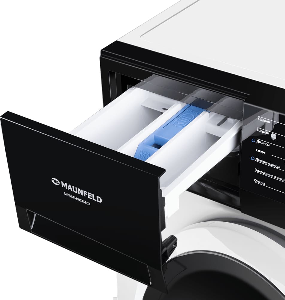 Стиральная машина Маунфилд MFWM1410STWH03 выпущена в стандартной конфигурации — устанавливается отдельно, поэтому рекомендуем заранее выделить для нее место в квартире. Благодаря классической фронтальной загрузке она привычна и удобна даже для тех, кто не очень разбирается в технике. В барабан помещается большое количество белья, что подойдет большим семьям или тем, кто часто стирает объемные вещи — постельное белье, верхнюю одежду. Максимальная загрузка: 10 кг.
