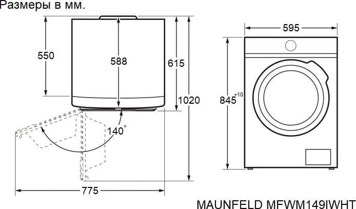 Стиральная машина Маунфилд MFWM149IWHT выпущена в стандартной конфигурации — устанавливается отдельно, поэтому рекомендуем заранее выделить для нее место в квартире. Благодаря классической фронтальной загрузке она привычна и удобна даже для тех, кто не очень разбирается в технике. Вместительность барабана средняя, поэтому ее хватит и для одиночек, и для семей с детьми. Максимальная загрузка: 9 кг.