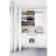 Полностью встраиваемые стиральные машины — один самых распространенных типов, особенно в условиях ограниченного пространства. Они размещаются в тумбах, скрываясь за мебельными фасадами и позволяя таким образом сохранить единство стиля. Вместимость этих устройств варьируется в пределах от 5 до 12 кг белья. Высота их составляет 84-85 см, что является стандартным значением, ширина равна 60 см, глубина же может быть различной. Размещают подобные модели обычно в кухне, а не в ванной, поскольку та имеет меньшую площадь.