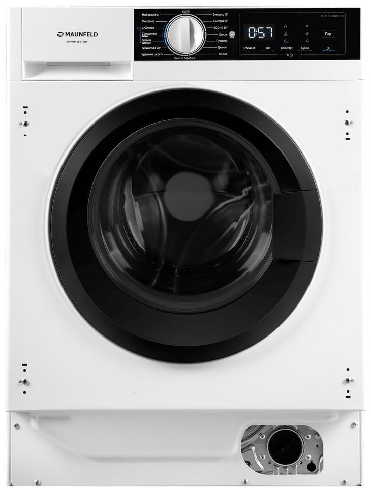 Стиральная машина Маунфилд MBWM148STWH принадлежит к немногочисленному сегменту встраиваемой техники — для ее установки необходимо тщательно выбрать заранее нишу в мебельном гарнитуре. Благодаря классической фронтальной загрузке она привычна и удобна даже для тех, кто не очень разбирается в технике. За счет небольшой глубины данную модель предпочитают владельцы небольших квартир, студий. Вместительность барабана средняя, поэтому ее хватит и для одиночек, и для семей с детьми. Максимальная загрузка: 8 кг.