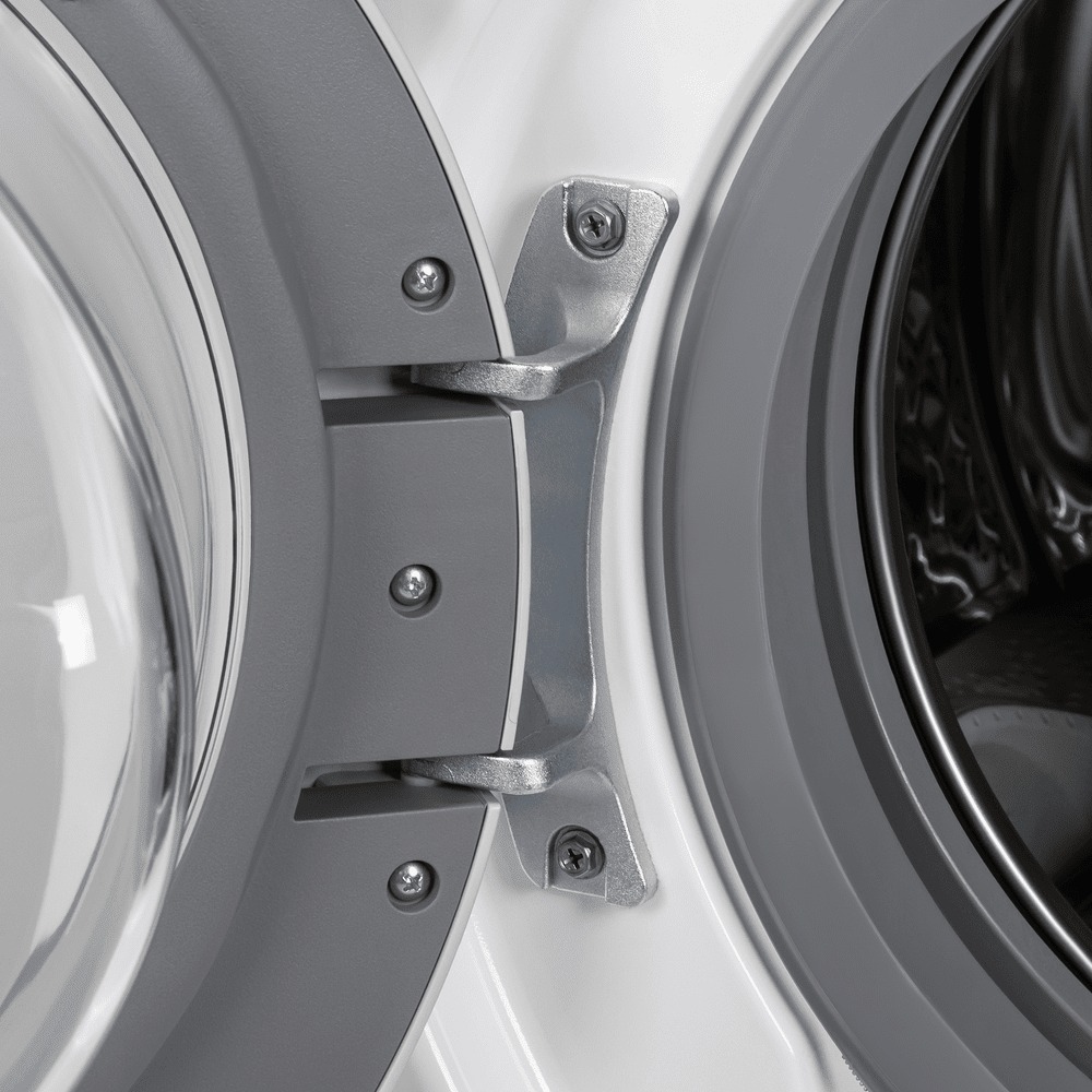 Еще одно преимущество фронтальных машин — прозрачное стекло в дверце, позволяющее визуально контролировать процесс стирки. Безопасность использования гарантирует блокировка дверцы после запуска программы стирки.
