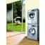 Второй способ — установка отдельно стоящей стиральной машины под раковиной в ванной — несколько труднее, ассортимент таких моделей также намного меньше. Установка раковины производится обычно на высоте 90 см, так что при этом необходим выбор раковины высотой не более 10 см (так называемая «Кувшинка» с горизонтальным сливом) и компактной стиралки уменьшенной высоты для предотвращения их соприкосновения, особенно во время отжима. Стиральная машина, кроме того, не должна выступать за край раковины, чтобы не допустить попадания влаги. Для удобства пользователей стиральная машина и раковина могут продаваться в комплекте.