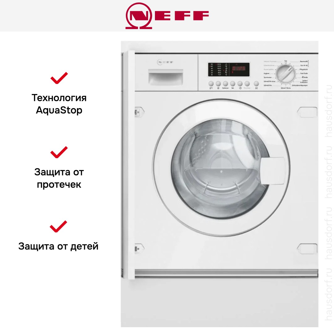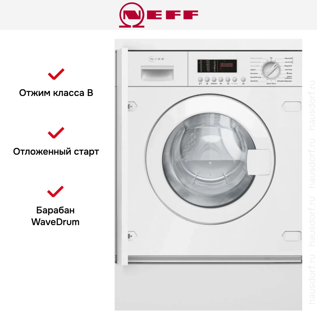 Цвет этой стиральной машинки — белый. В данной модели Neff используется барабан WaveDrum. Его конструкция разработана специально для более бережной, но при этом все еще эффективной стирки. Мотор: Универсальный.