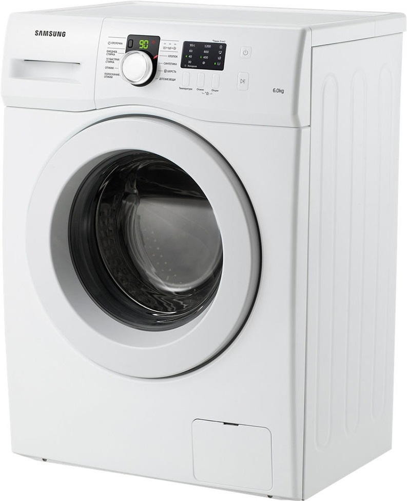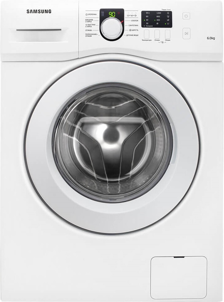 Стиральная машина Самсунг WF 60F1R0F2W выпущена в стандартной конфигурации — устанавливается отдельно, поэтому рекомендуем заранее выделить для нее место в квартире. Благодаря классической фронтальной загрузке она привычна и удобна даже для тех, кто не очень разбирается в технике. За счет небольшой глубины данную модель предпочитают владельцы небольших квартир, студий. В барабан помещается не так много вещей за один раз, но тем, кто не любит копить вещи или просто мало стирает, будет достаточно. Максимальная загрузка: 6 кг.
