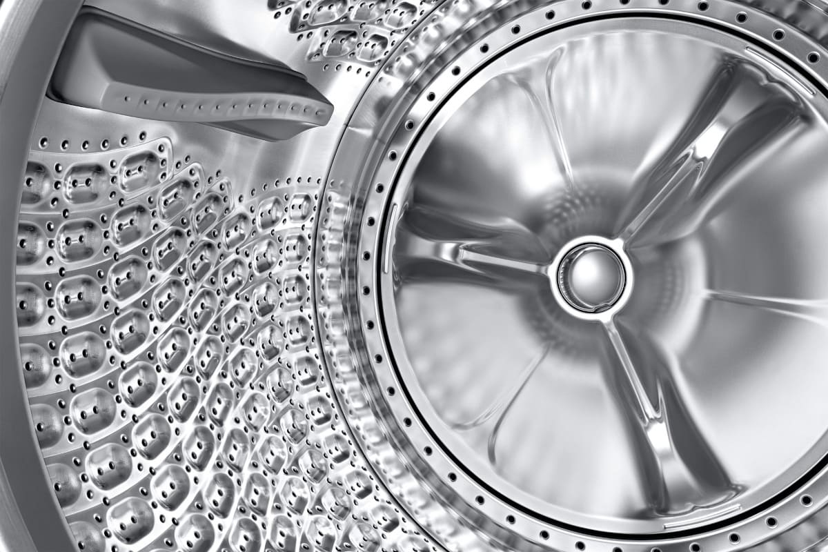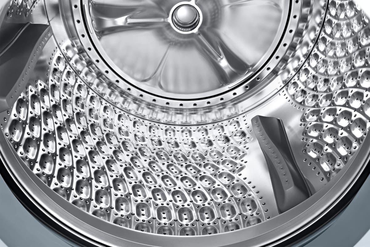 Перфорация на поверхности барабана может быть различной. Как правило, это отверстия, подобные отверстиям на поверхности обычной терки. Втягиваясь в них, белье очищается от грязи, однако особенностей конструкции быстро изнашивается. Гораздо более бережно удаляют загрязнения капельные барабаны с продолговатыми выпуклостями на поверхности, жемчужные с выступающими полусферами и сотовые с внутренней частью, покрытой выпуклыми шестиугольниками.