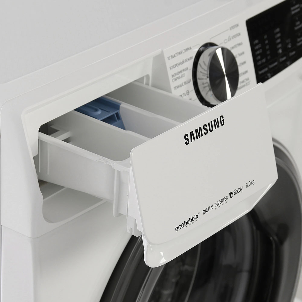Стиральная машина Самсунг WW 80 R 62 LVEWDLP выпущена в стандартной конфигурации — устанавливается отдельно, поэтому рекомендуем заранее выделить для нее место в квартире. Благодаря классической фронтальной загрузке она привычна и удобна даже для тех, кто не очень разбирается в технике. За счет небольшой глубины данную модель предпочитают владельцы небольших квартир, студий. Вместительность барабана средняя, поэтому ее хватит и для одиночек, и для семей с детьми. Максимальная загрузка: 8 кг.