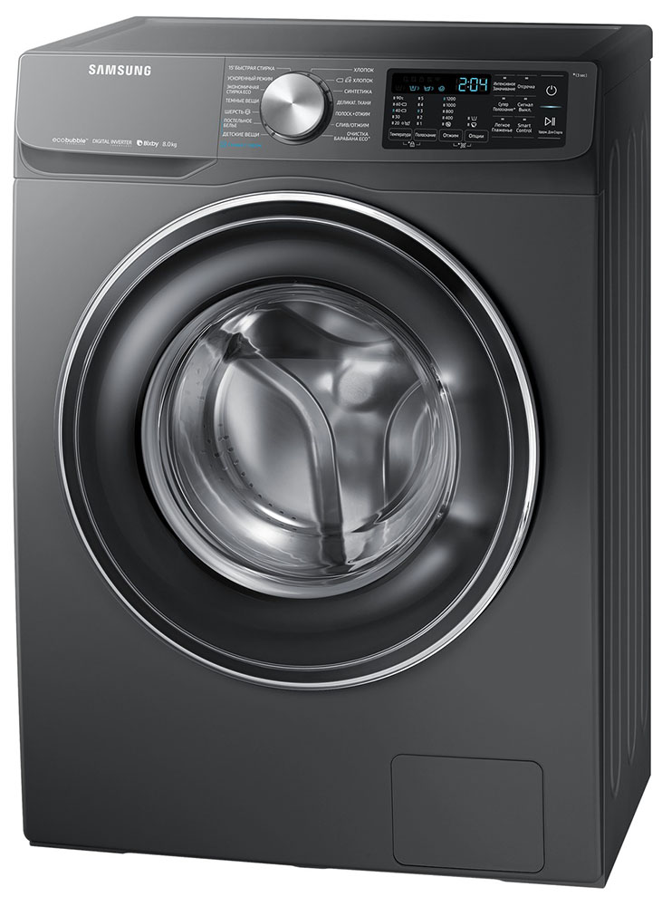 Стиральная машина Самсунг WW 80 R 62 LVEXDLP выпущена в стандартной конфигурации — устанавливается отдельно, поэтому рекомендуем заранее выделить для нее место в квартире. Благодаря классической фронтальной загрузке она привычна и удобна даже для тех, кто не очень разбирается в технике. За счет небольшой глубины данную модель предпочитают владельцы небольших квартир, студий. Вместительность барабана средняя, поэтому ее хватит и для одиночек, и для семей с детьми. Максимальная загрузка: 8 кг.