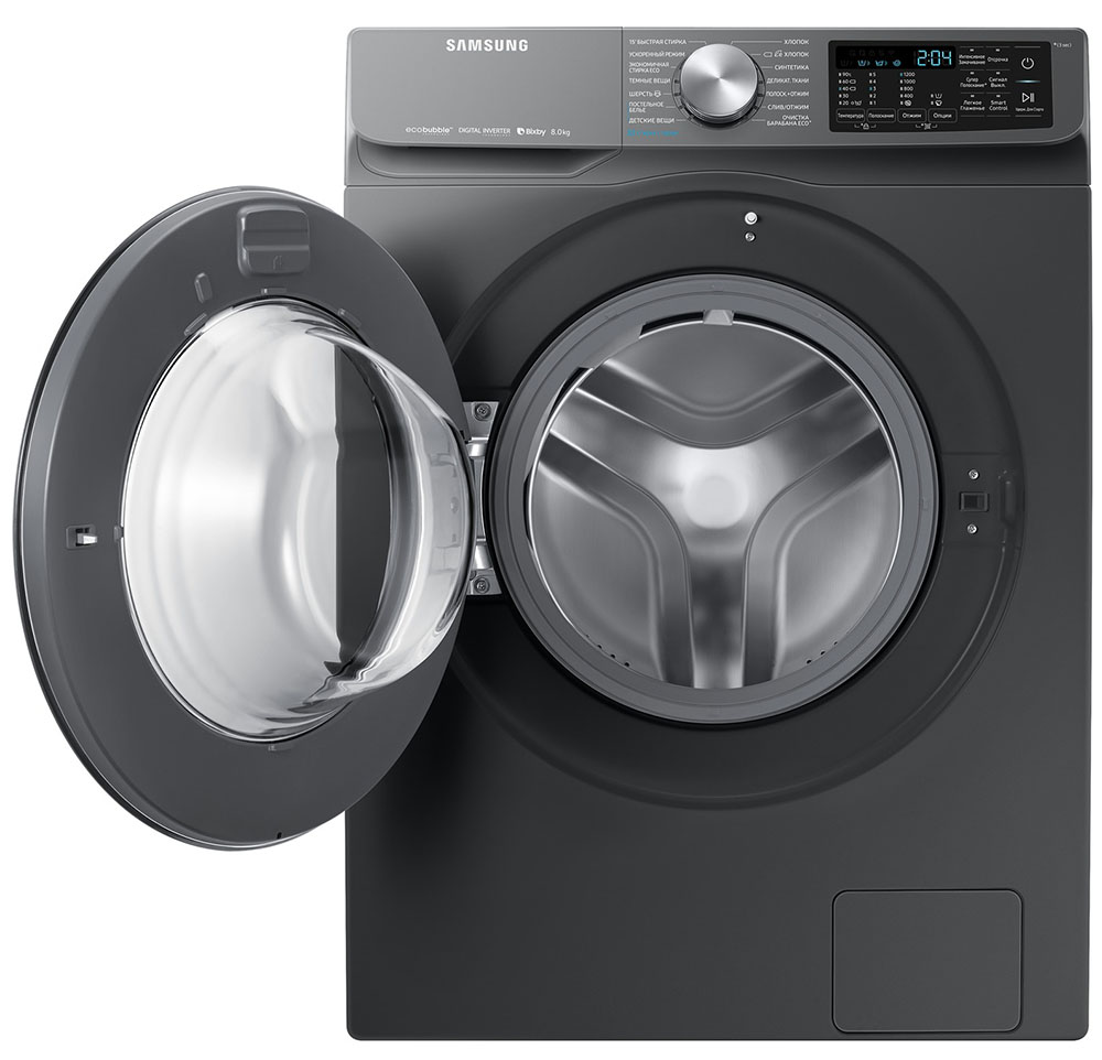 Цвет этой стиральной машинки — темное серебро. Мотор: Инверторный. Благодаря ему машина работает тише, потребляет меньше электроэнергии, сохраняя при этом необходимую мощность.