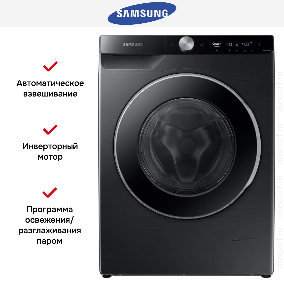 Стиральная машина Samsung WW11CG604CLBLP создана для тех, кто ценит современный внешний вид и продуманную функциональность в одном корпусе. Чёрный цвет и глянцевый люк придают устройству статусный и аккуратный облик, который легко впишется в интерьер кухни или прачечной. Корпус выполнен в компактных габаритах 85×60×60 см, что упрощает расстановку в ограниченном пространстве и позволяет сохранить свободное место рядом с бытовой техникой. Наклонная панель управления и LED-дисплей обеспечивают удобный обзор программ и параметров даже стоя чуть в стороне от машины.