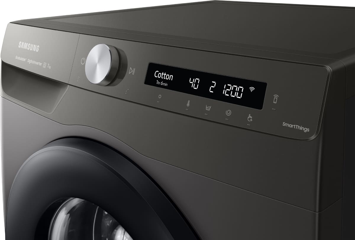 Цвет этой стиральной машинки — серый. В данной модели Samsung используется барабан Diamond. Мотор: Инверторный. Благодаря ему машина работает тише, потребляет меньше электроэнергии, сохраняя при этом необходимую мощность.