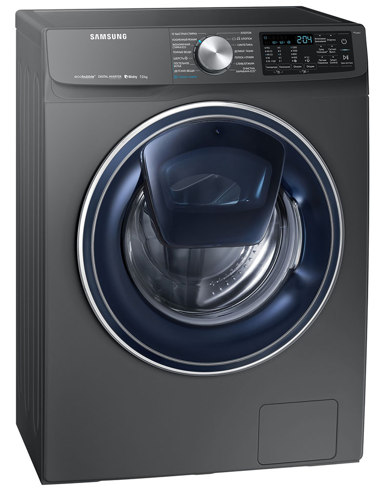 Цвет этой стиральной машинки — графит. Мотор: Инверторный. Благодаря ему машина работает тише, потребляет меньше электроэнергии, сохраняя при этом необходимую мощность.