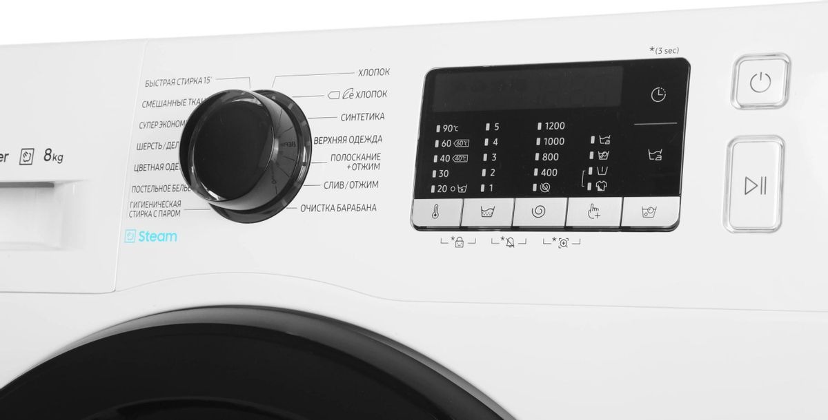 Вы можете отложить запуск, если хотите сэкономить на тарифах и включить машинку ночью, либо если планируете развесить белье сразу после возвращения работы и не ждать, пока закончится цикл. На панели управления отображаются разнообразные индикаторы, чтобы было проще следить за процессом, например: выбранной программы, включения и выключения. Скорость отжима достигает 1200 оборотов в минуту. Функцию отжима можно будет отключить вручную, если она вам не нужна.