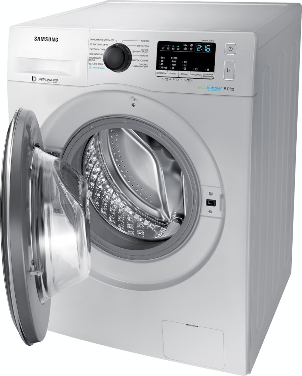 Стиральная машина Самсунг WW80K42E07S выпущена в стандартной конфигурации — устанавливается отдельно, поэтому рекомендуем заранее выделить для нее место в квартире. Благодаря классической фронтальной загрузке она привычна и удобна даже для тех, кто не очень разбирается в технике. За счет небольшой глубины данную модель предпочитают владельцы небольших квартир, студий. Вместительность барабана средняя, поэтому ее хватит и для одиночек, и для семей с детьми. Максимальная загрузка: 8 кг.