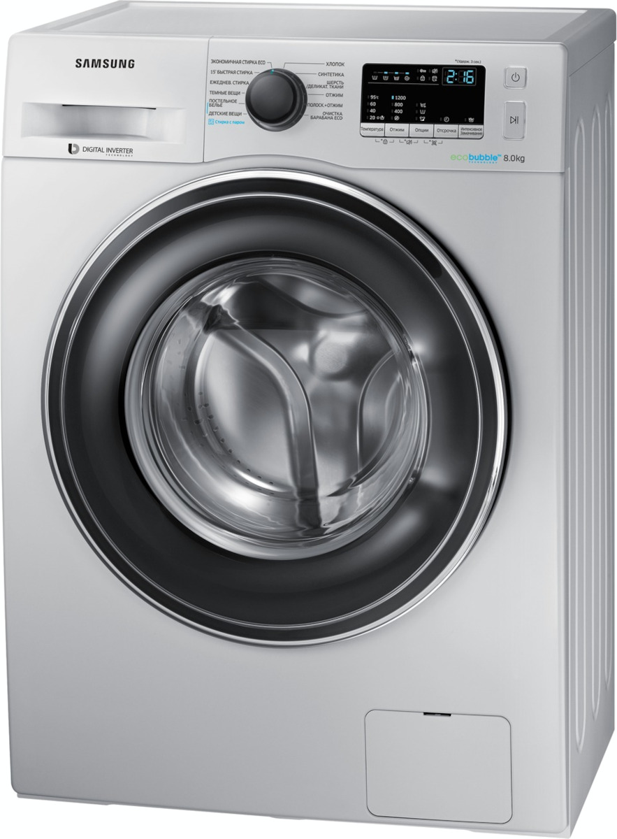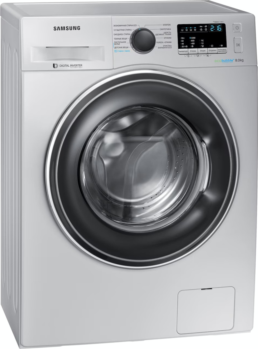 Цвет этой стиральной машинки — серебристый. Мотор: Инверторный. Благодаря ему машина работает тише, потребляет меньше электроэнергии, сохраняя при этом необходимую мощность.