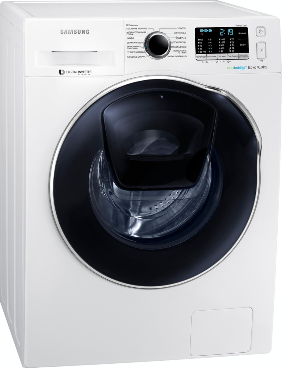 Технология Eco Bubble™ (превращает моющее средство в активную пену, позволяя ей быстрее проникать в ткань и улучшая качество стирки)