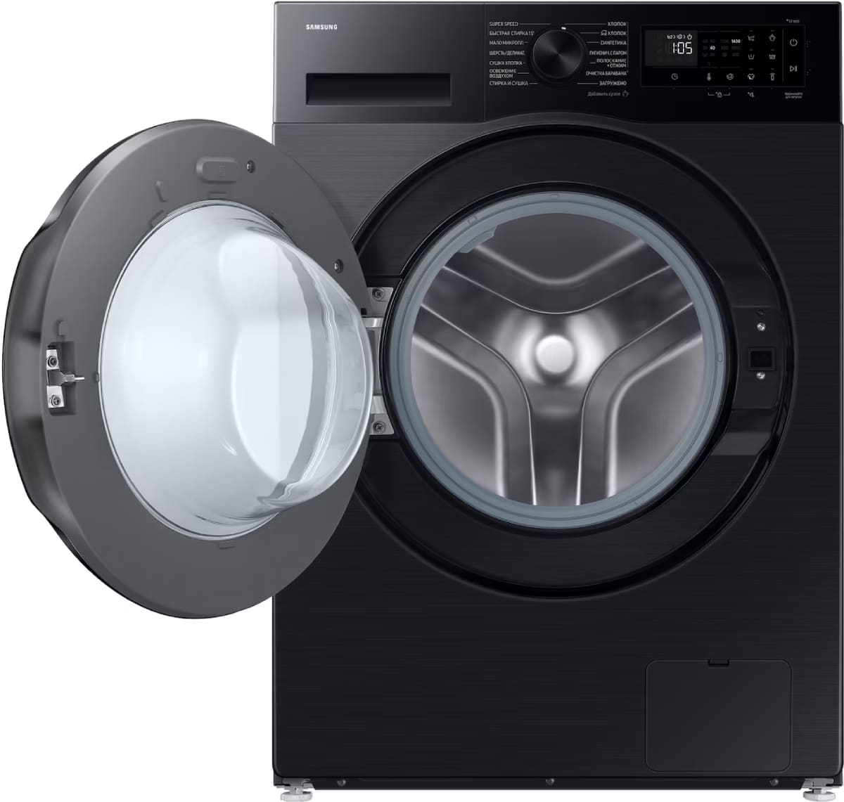 Цвет этой стиральной машинки — черный. В данной модели Samsung используется барабан Swirl. Мотор: Инверторный. Благодаря ему машина работает тише, потребляет меньше электроэнергии, сохраняя при этом необходимую мощность.