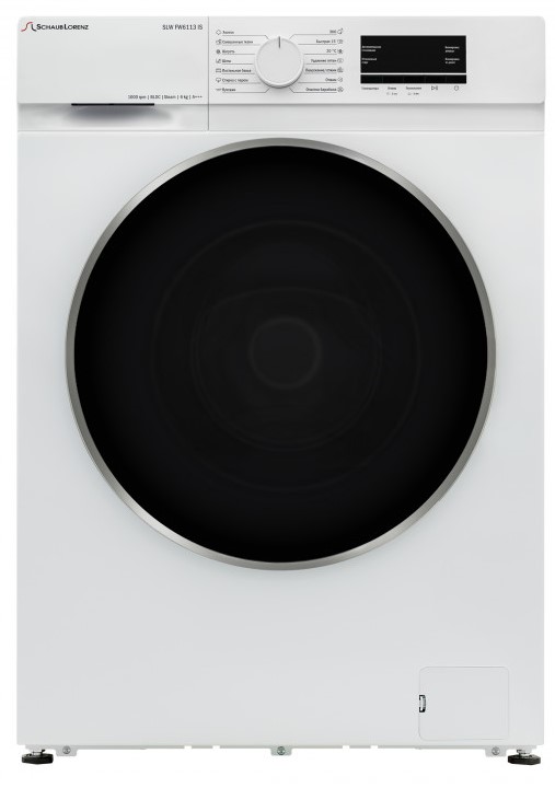 Стиральная машина Шауб Лоренц SLW FW6113 IS выпущена в стандартной конфигурации — устанавливается отдельно, поэтому рекомендуем заранее выделить для нее место в квартире. Благодаря классической фронтальной загрузке она привычна и удобна даже для тех, кто не очень разбирается в технике. За счет небольшой глубины данную модель предпочитают владельцы небольших квартир, студий. В барабан помещается не так много вещей за один раз, но тем, кто не любит копить вещи или просто мало стирает, будет достаточно. Максимальная загрузка: 6 кг.