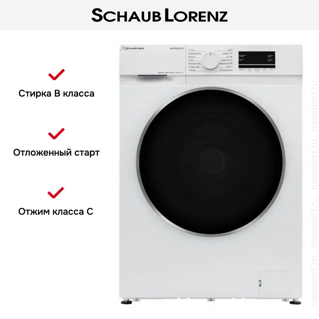Стиральная машина Schaub Lorenz SLW-FW6113 IS — компактное решение для дома с продуманным дизайном и набором функций. Корпус в белом оттенке гармонично смотрится в любом интерьере, а контрастная черная дверца добавляет современности. Глубина 39 см и высота 84 см делают прибор особенно удачным для узких ниш и небольших прачечных. Диаметр люка 48 см обеспечивает удобную загрузку, а фронтальный доступ позволяет комфортно укладывать и доставать белье.