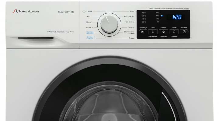 Стиральная машина Шауб Лоренц SLW FW6114 IS выпущена в стандартной конфигурации — устанавливается отдельно, поэтому рекомендуем заранее выделить для нее место в квартире. Благодаря классической фронтальной загрузке она привычна и удобна даже для тех, кто не очень разбирается в технике. За счет небольшой глубины данную модель предпочитают владельцы небольших квартир, студий. В барабан помещается не так много вещей за один раз, но тем, кто не любит копить вещи или просто мало стирает, будет достаточно.
