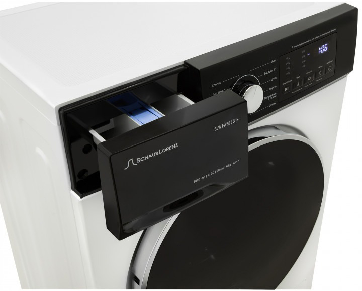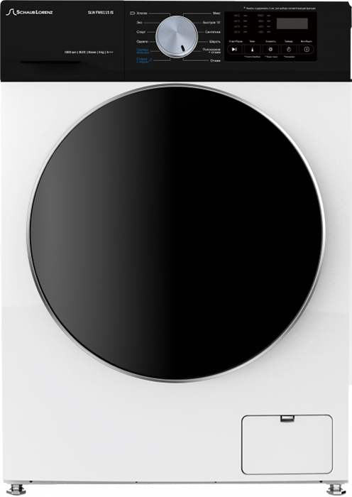 Стиральная машина Шауб Лоренц SLW FW6115 IS выпущена в стандартной конфигурации — устанавливается отдельно, поэтому рекомендуем заранее выделить для нее место в квартире. Благодаря классической фронтальной загрузке она привычна и удобна даже для тех, кто не очень разбирается в технике. За счет небольшой глубины данную модель предпочитают владельцы небольших квартир, студий. В барабан помещается не так много вещей за один раз, но тем, кто не любит копить вещи или просто мало стирает, будет достаточно. Максимальная загрузка: 6 кг.