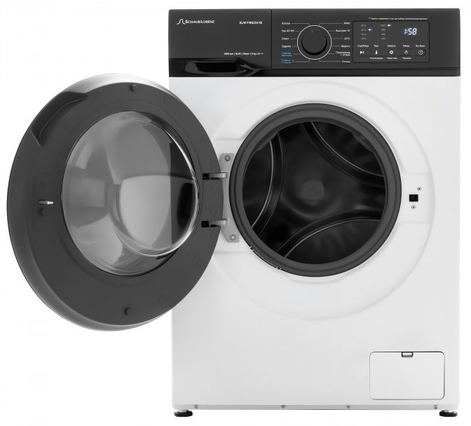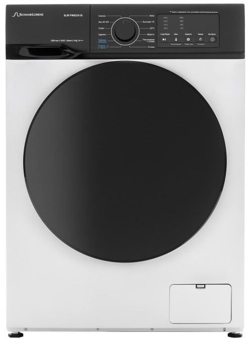 Стиральная машина Шауб Лоренц SLW FW6224 IS выпущена в стандартной конфигурации — устанавливается отдельно, поэтому рекомендуем заранее выделить для нее место в квартире. Благодаря классической фронтальной загрузке она привычна и удобна даже для тех, кто не очень разбирается в технике. За счет небольшой глубины данную модель предпочитают владельцы небольших квартир, студий. В барабан помещается не так много вещей за один раз, но тем, кто не любит копить вещи или просто мало стирает, будет достаточно. Максимальная загрузка: 6 кг.