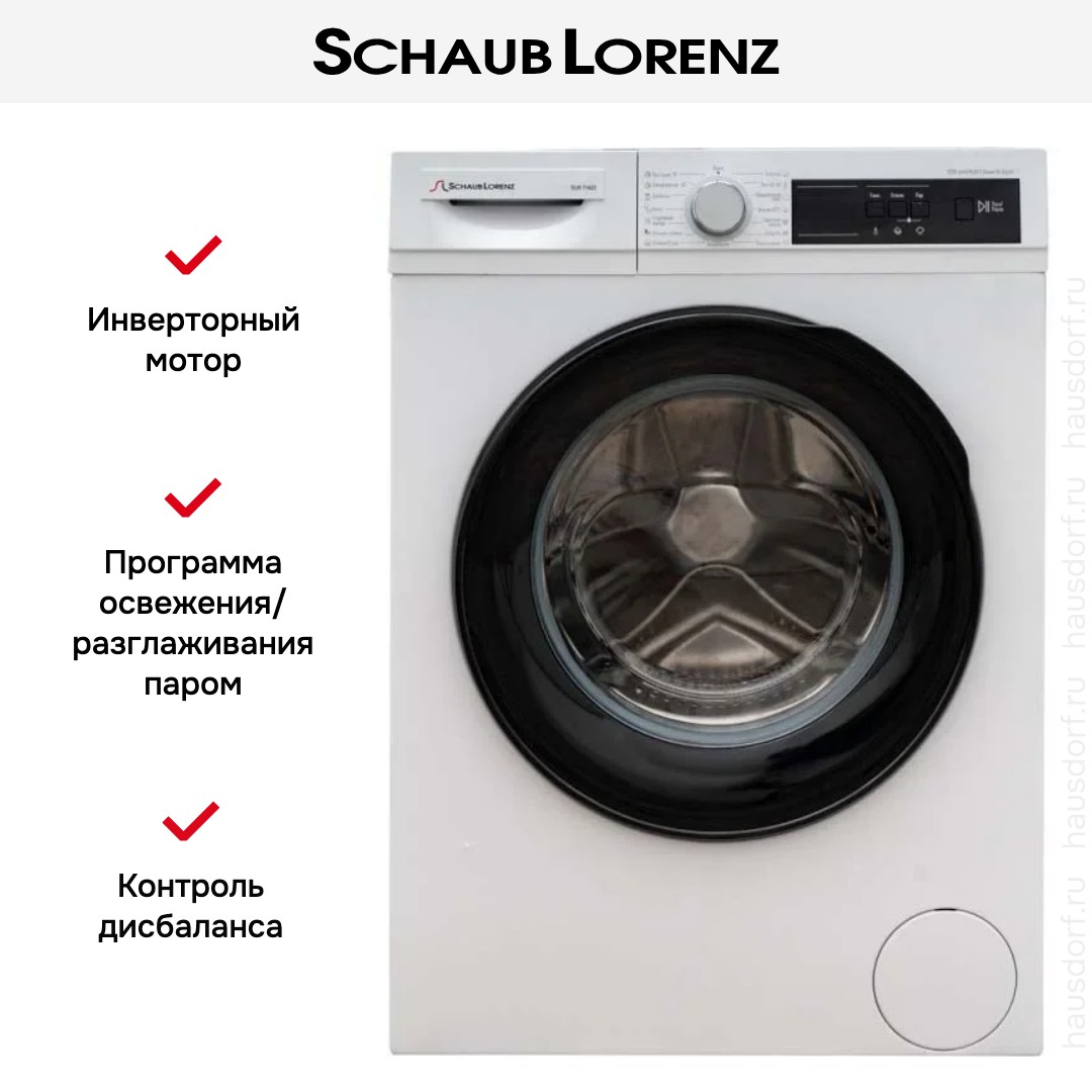 Стиральная машина Schaub Lorenz SLW-T1622 выполнена в лаконичном белом цвете и вписывается в современные интерьеры. Дизайн ориентирован на практичность: белая передняя панель и люк с диаметром 47 см создают аккуратный и строгий образ. Глубина корпуса всего 41,6 см делает прибор удобным для узких кухонь и небольших ванных комнат. Высота 84,5 см и ширина 59,7 см соответствуют стандартным нишам для отдельно стоящих моделей, а масса 60,5 кг говорит о добротной сборке и устойчивости в процессе работы.