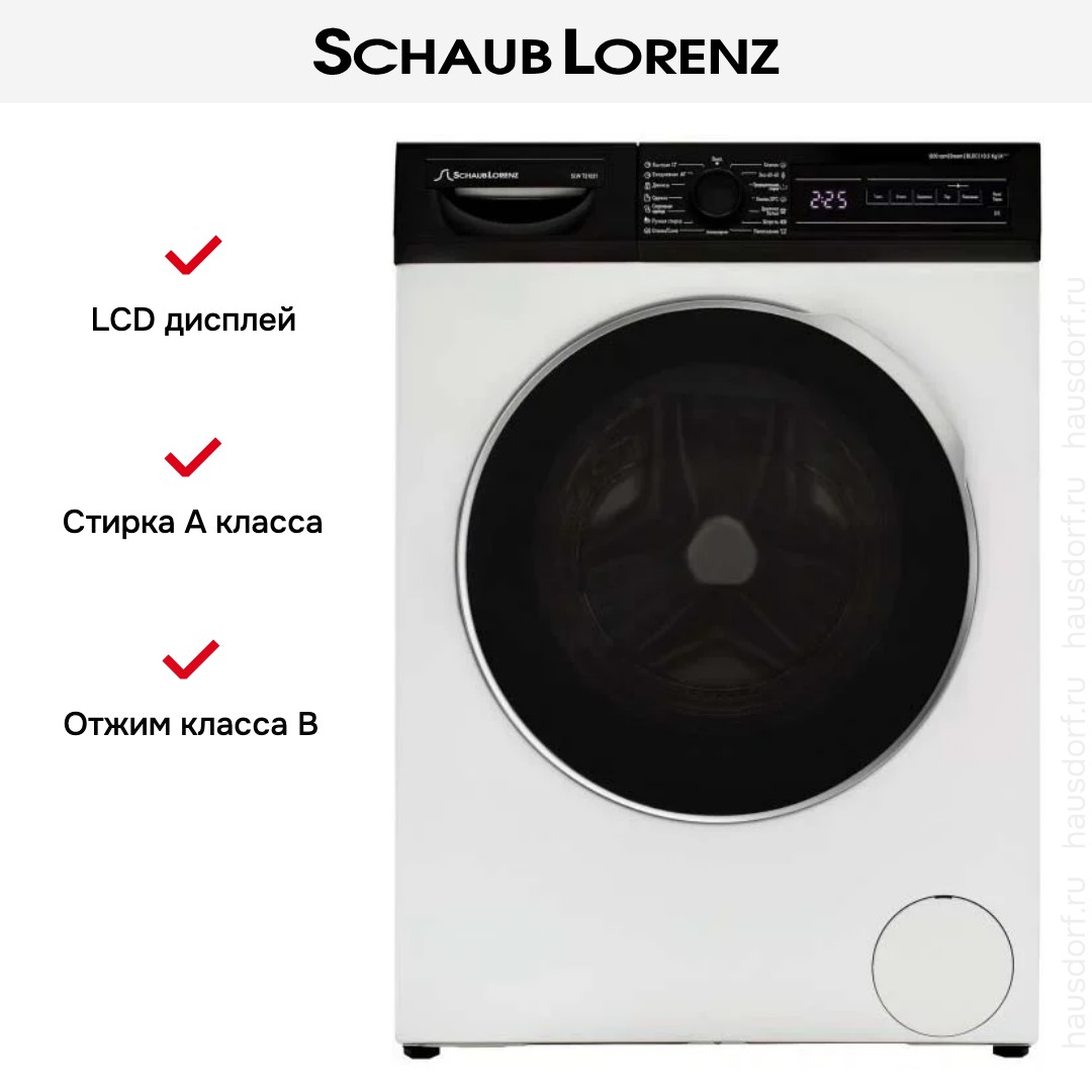 Цвет этой стиральной машинки — белый. В данной модели Schaub Lorenz используется барабан сотовый. Мотор: Инверторный. Благодаря ему машина работает тише, потребляет меньше электроэнергии, сохраняя при этом необходимую мощность.