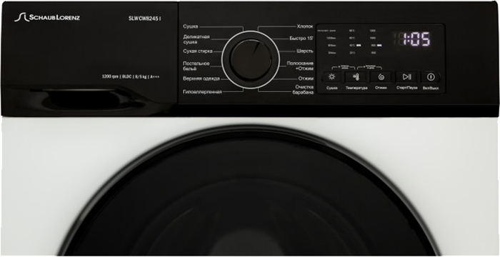 Стирально-сушильная машина Schaub Lorenz SLW-CW8245-i представляет собой универсальный прибор для дома со стильным дизайном и продуманной эргономикой. Белый корпус и контрастная чёрная дверца диаметром 47,2 см делают прибор эффектным и в то же время нейтральным по стилю. Лаконичную переднюю панель дополняет LED-дисплей, сенсорные кнопки и удобный поворотный программатор.