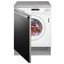 Полностью встраиваемые стиральные машины — один самых распространенных типов, особенно в условиях ограниченного пространства. Они размещаются в тумбах, скрываясь за мебельными фасадами и позволяя таким образом сохранить единство стиля. Вместимость этих устройств варьируется в пределах от 5 до 12 кг белья. Высота их составляет 84-85 см, что является стандартным значением, ширина равна 60 см, глубина же может быть различной. Размещают подобные модели обычно в кухне, а не в ванной, поскольку та имеет меньшую площадь.