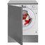 Полностью встраиваемые стиральные машины — один самых распространенных типов, особенно в условиях ограниченного пространства. Они размещаются в тумбах, скрываясь за мебельными фасадами и позволяя таким образом сохранить единство стиля. Вместимость этих устройств варьируется в пределах от 5 до 12 кг белья. Высота их составляет 84-85 см, что является стандартным значением, ширина равна 60 см, глубина же может быть различной. Размещают подобные модели обычно в кухне, а не в ванной, поскольку та имеет меньшую площадь.