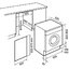В отличие от другой встраиваемой техники, круглая дверца стиральных машин редко крепится к мебельному фасаду, она способна открываться отдельно. При размещении требуется оставлять зазор между задней стенкой машины и стеной помещения для свободного размещения шлангов. Нижняя часть стиралки закрывается цоколем, а верхняя — столешницей: крышку машины при этом иногда можно снять.