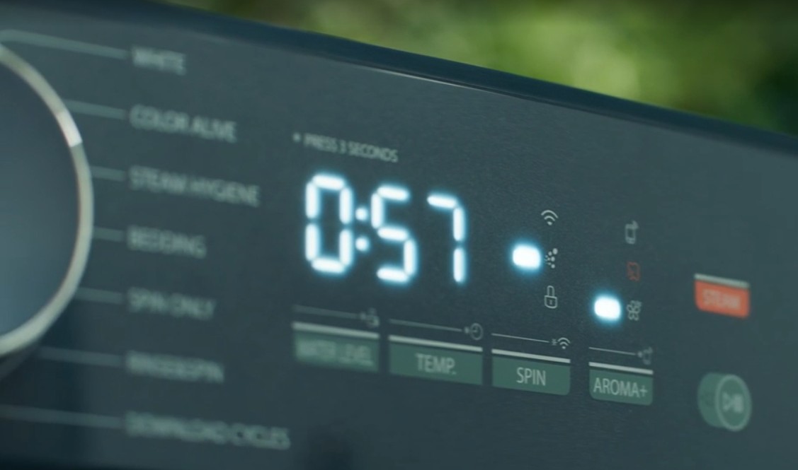 Достаточно простыми, но гораздо более информативными являются цифровые дисплеи, которые могут отображать числовую информацию и ограниченное количество символов. На таком дисплее, например, может отобразиться номер программы, скорость отжима, блокировка люка, отсрочка старта, температура воды, время, оставшееся до конца работы, символические обозначения действующих функций и прочая достаточно простая информация. Изображение может быть разного цвета — белого, зеленого или голубого, в любом оно будет хорошо заметно даже при отключенном освещении.
