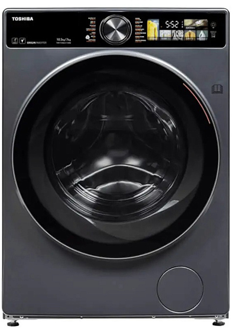 Стиральная машина Тошиба TW-T25BZU115MWRU(MG) выпущена в стандартной конфигурации — устанавливается отдельно, поэтому рекомендуем заранее выделить для нее место в квартире. Благодаря классической фронтальной загрузке она привычна и удобна даже для тех, кто не очень разбирается в технике. В барабан помещается большое количество белья, что подойдет большим семьям или тем, кто часто стирает объемные вещи — постельное белье, верхнюю одежду. Максимальная загрузка: 10.5 кг.