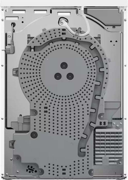 Тип сушки белья в данной модели — тепловой насос. Благодаря этому воздух поступает в барабан уже теплым, что ускоряет работу.