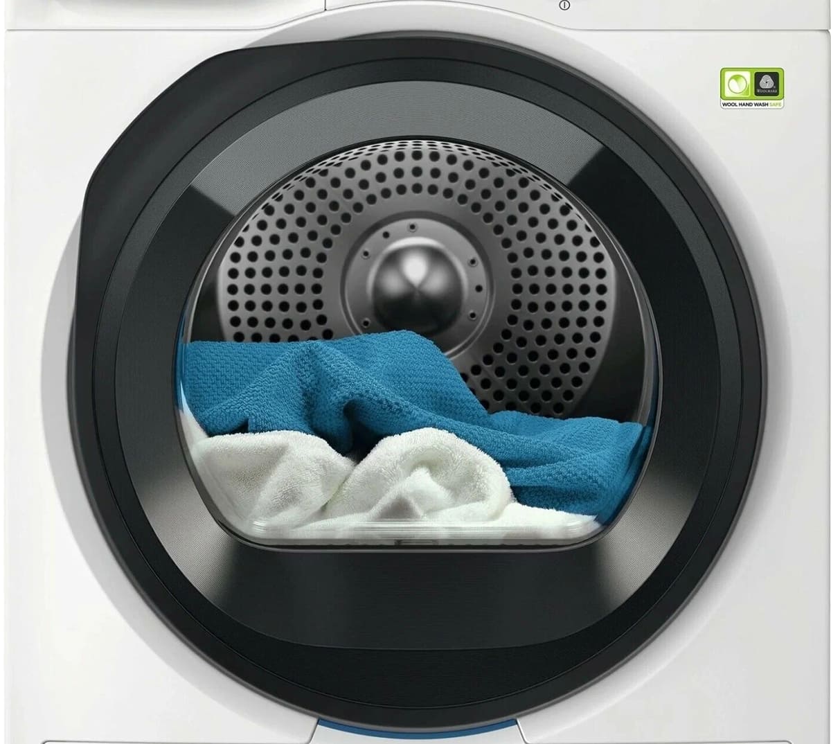 Электронное управление удобно и понятно для людей разного поколения. Контролировать процесс можно с помощью дисплея, на который выводится основная информация. В вашем распоряжении индикаторы: времени до окончания программы, заполнения емкости для конденсата/необходимости опорожнения резервуара, продолжительности фазы «антисминание». Вы можете использовать таймер, чтобы отложить запуск на подходящее время. Когда машинка прекратит работу, вы услышите специальный сигнал.