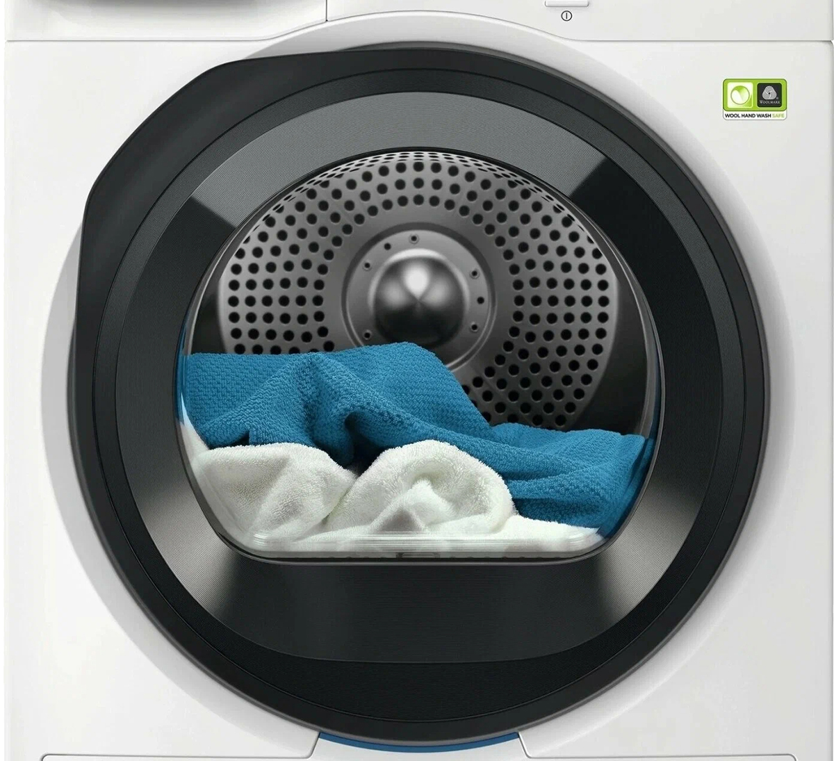 Тип сушки белья в данной модели — с тепловым насосом. Благодаря этому воздух поступает в барабан уже теплым, что ускоряет работу.